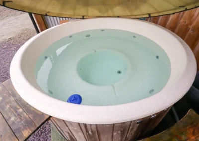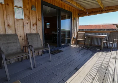 - Non-enclosed decking with furniture, hot tub, and outdoor shower
