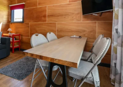 Arthur is a delightful, wooden cabin nestled into the outskirts of the town of Cilcain, in the Clwydian Range & Dee Valley National Landscape. With the added bonus of a bubbling hot tub, off-road parking, and countryside views, this property is ideal for a small family utilising the sofa bed, or a couple, looking to explore the countryside of Flintshire. Park up and be welcomed into this beautifully-presented lodge, with a spacious open-plan living area boasting delightful and contemporary furniture throughout. Make the most of the selection of amenities in the kitchen, cooking up a storm, which can be enjoyed at the dining table over a glass of fizz. After a long day of exploring, recline in the sitting area and enjoy a movie marathon. When sleep calls, freshen up in the stylish en-suite shower room, before retiring to the pretty double bedroom, or, for children, there is a sofa bed available. When the sun is shining, make the most of the countryside views by dining alfresco, before enjoying an opulent dip in the hot tub. There is so much to be explored with a stay at Arthur.